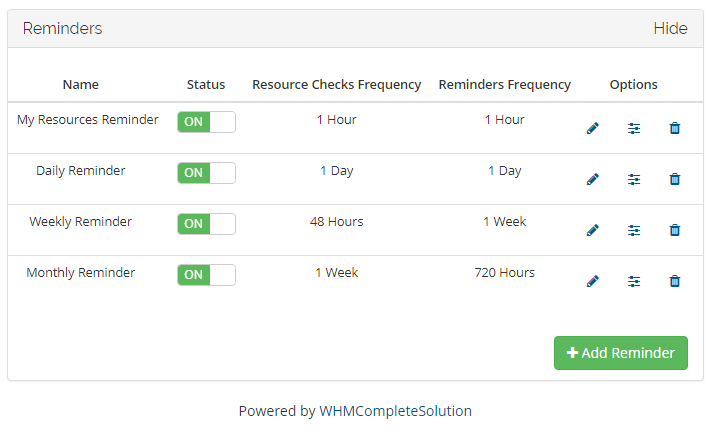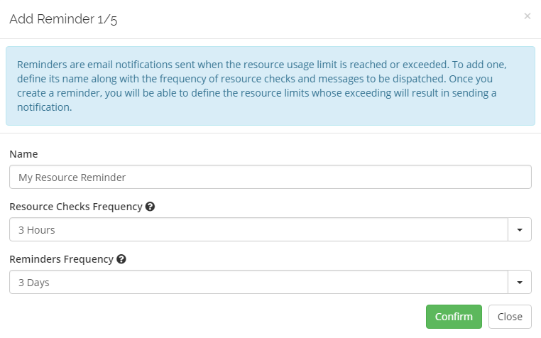 | ✔ Allow Clients To Create Multiple Resource Usage Reminders: |