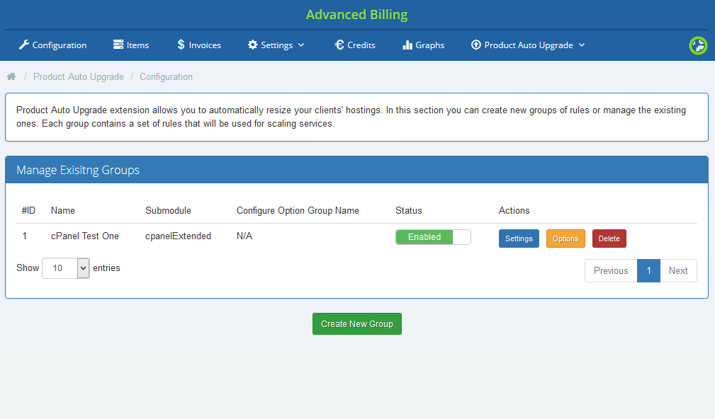 | In this section we will show you a sample situation when Product Auto Upgrade For WHMCS is used simultaneously with another built-in extension to Advanced Billing - Recurring Billing. |
