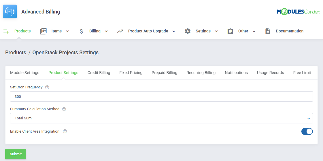 | The addon interface allows for configuration of key OpenStack Projects billing parameters directly from the WHMCS admin area. Available settings: