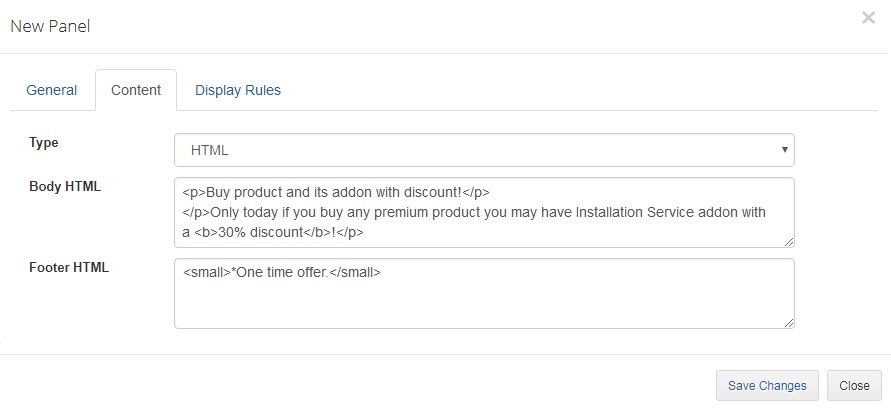| If you want only the specified clients to see the panel, set up the 'Display Rules' or 'Conditions' . Save changes. |