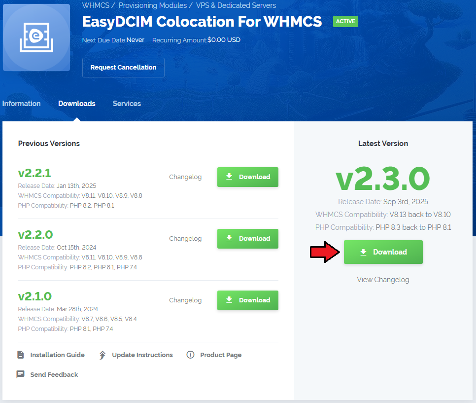| 2. Log in to the client area and download the latest version of the module. |