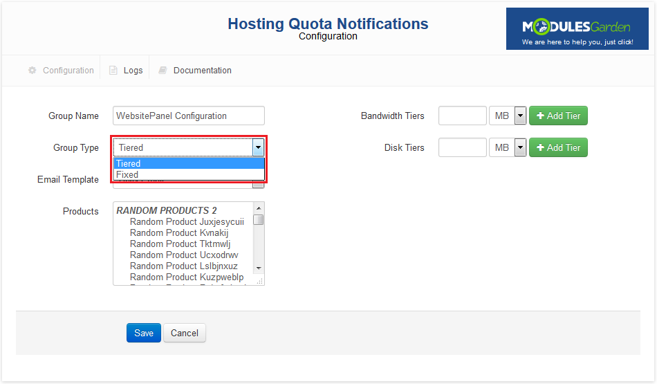 Now, you can define all products related to this configuration and email template which will be used to notify your clients.