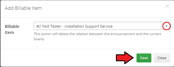| If you want to delete the relation between the billable item and the brand, click on the 'Delete' |
