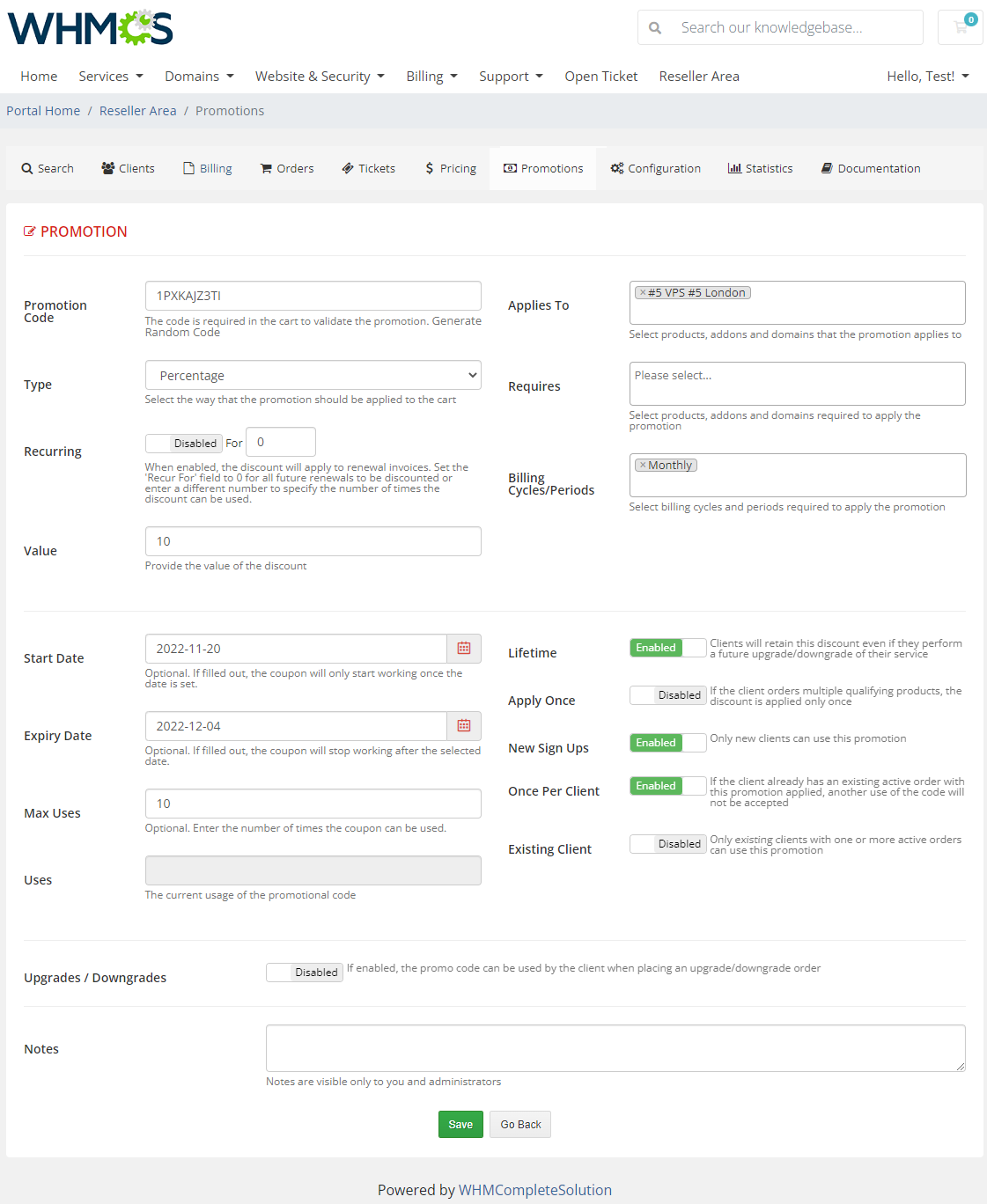 ✔ Allow Resellers To Access And Define Their Own Promotions