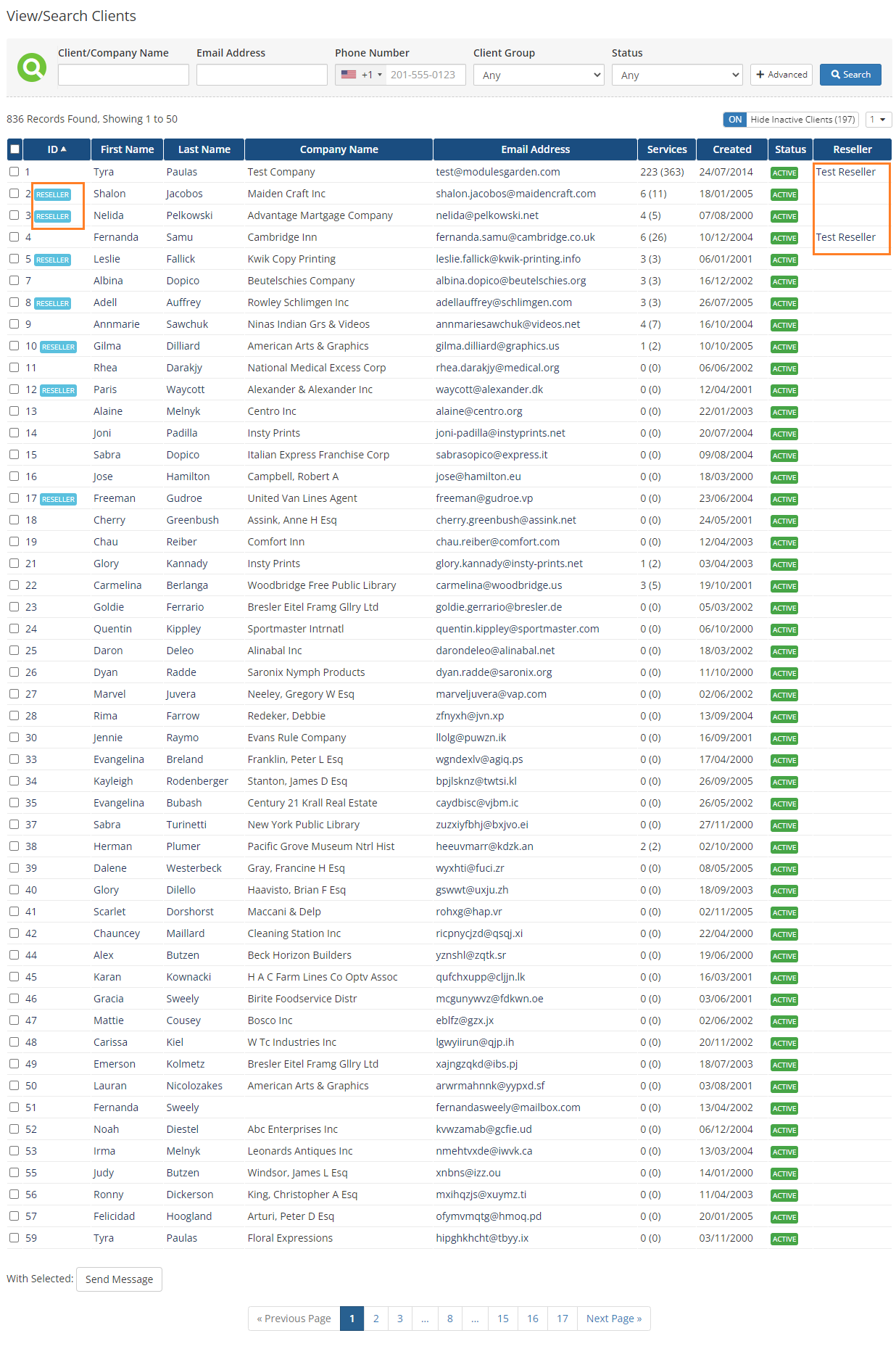 Thanks to Resellers Center For WHMCS, your resellers will be allowed to collect dedicated customers and select specific products, services, and domains for them.
