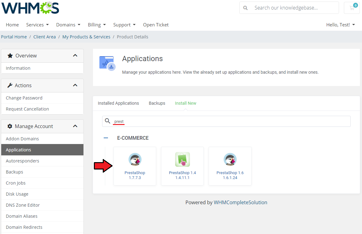 The module authorizes your customers to not only manage FTP accounts, domains, databases or backups but also install and manage various web applications.