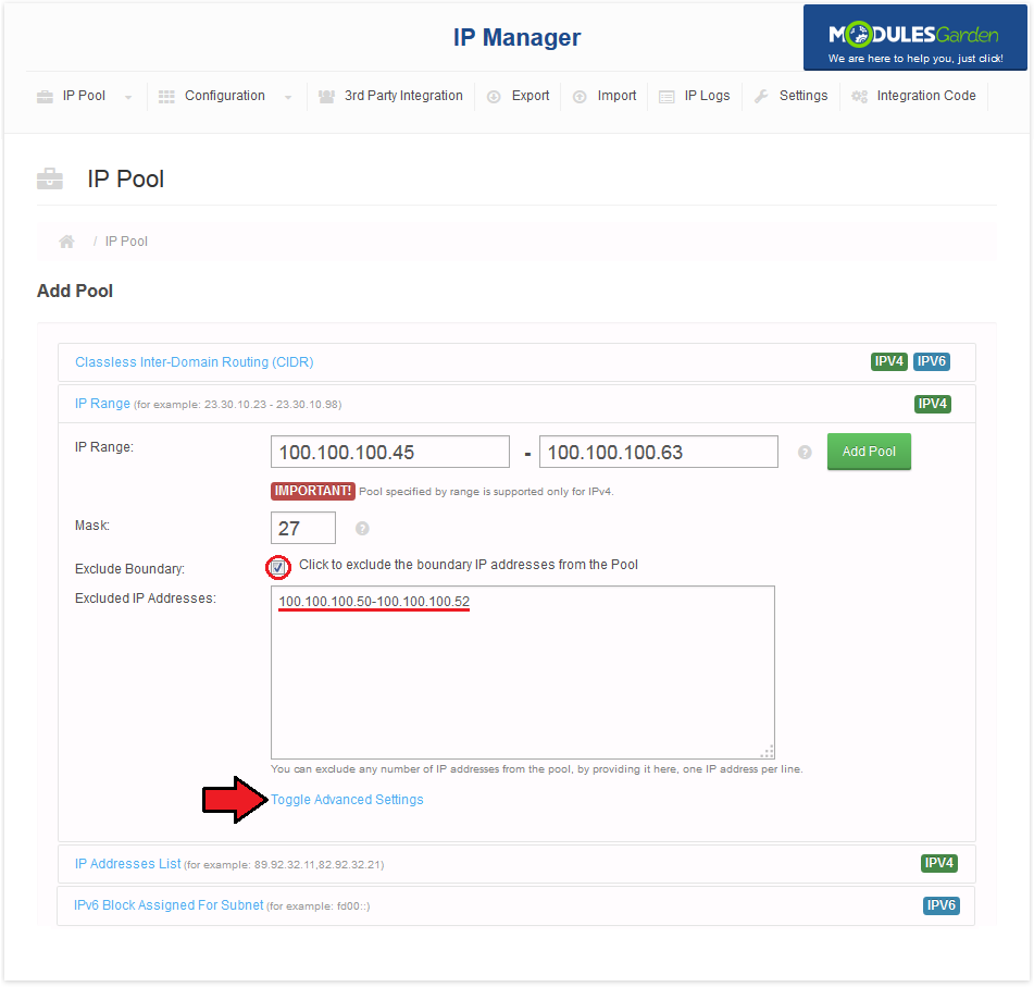 ✔ Add Pool By An IP Addresses Range (IPv4 Only)
